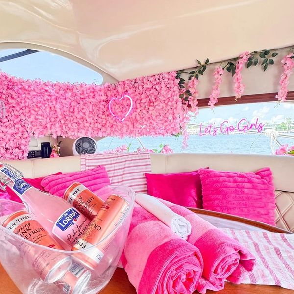 Captain, Mate, Fuel, Taxes, Floating Water Pool, Cooler with Ice and Waters and Bluetooth surround speakers included. Pink Flower Wall.